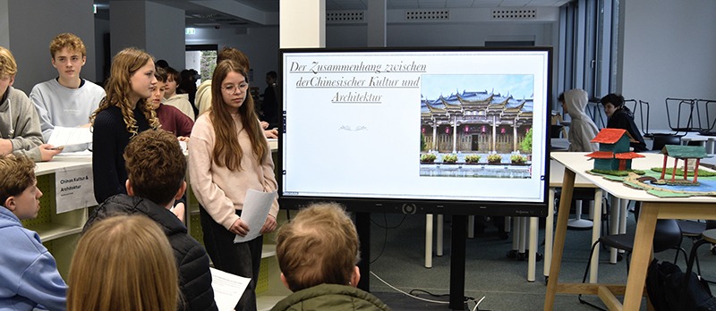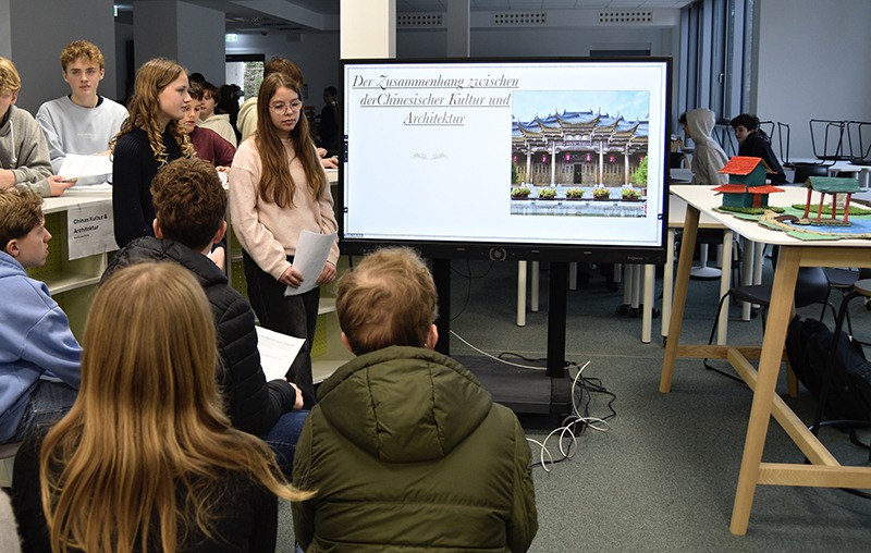 Über einen Zeitraum von Anfang Dezember bis Mitte Januar arbeiteten sie fächerübergreifend in Deutsch, Geschichte, Erdkunde, Politik und Religion an einer zentralen Leitfrage: Was macht China als Kultur, Gesellschaft und globale Macht so bedeutend – und wie beeinflusst das Land unser eigenes Leben?