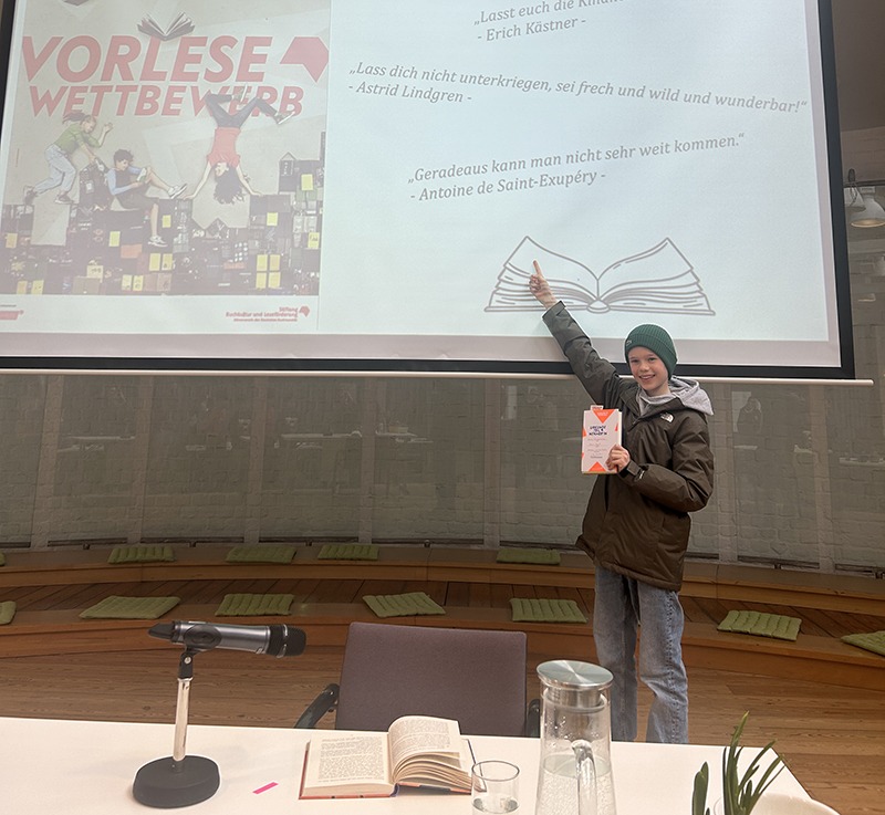 Henry habe „eine beeindruckende und schön betonte Performance“ abgeliefert, so Solveig Stelzig. Auch wenn es am Ende nicht für den Sieg gereicht hat, hat er den Hagerhof würdig und mit großem Einsatz vertreten. Wir sind stolz auf die Leistung und seinen Mut, vor großem Publikum vorzulesen.