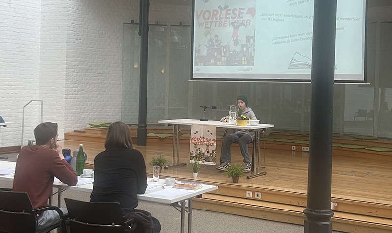 Den Schulentscheid hatte Henry bereits Anfang Dezember für sich entschieden – und damit das Ticket für den Stadtentscheid in Hennef gesichert. Begleitet von seiner Lehrerin Solveig Stelzig und zwei Mitschülern aus der 6c reiste Henry zur Meys Fabrik, wo der Kreisentscheid in Kooperation mit der Stadtbibliothek Hennef ausgetragen wurde. Dort präsentierte er vor Publikum und Jury einen Ausschnitt aus Antoine de Saint-Exupérys weltbekanntem Werk Der kleine Prinz – eine Passage über Freundschaft.