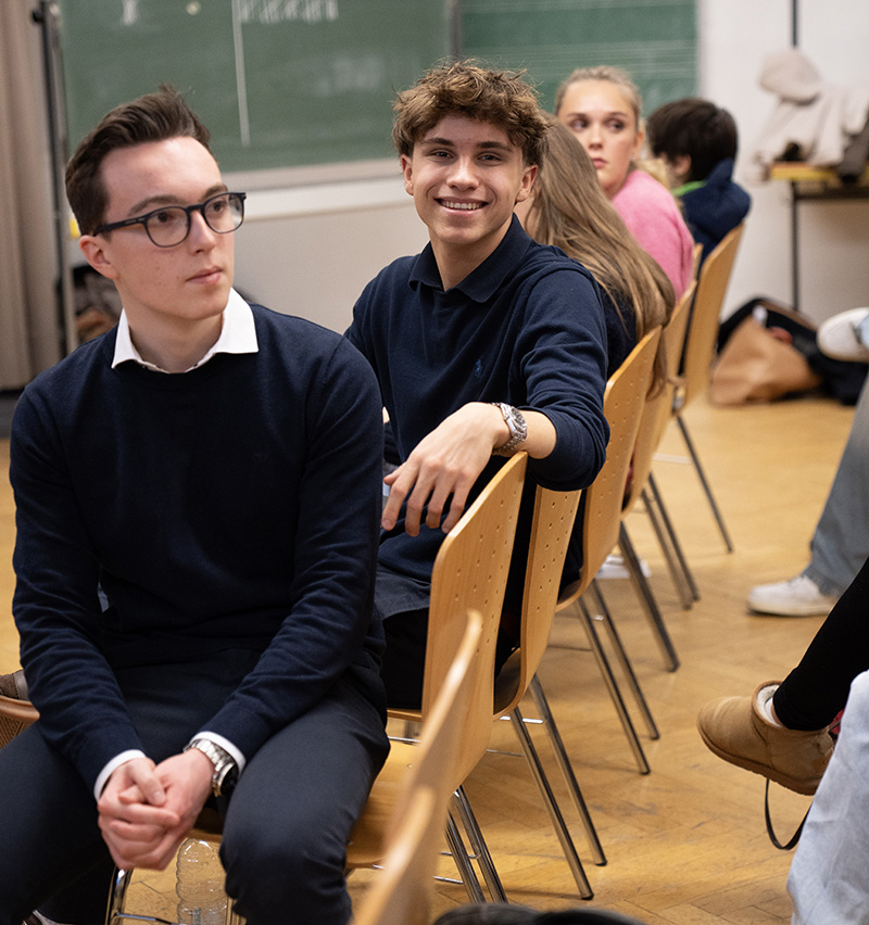 Insgesamt 50 Schülerinnen und Schüler aus fast allen Jahrgangsstufen waren interessierte Zuhörer, als unsere vier Debattanten Emilia, Sofia, Lukas und Ben-Luca Argumente zur Debattenfrage austauschten. Hier wurden in strukturierter Form viele Pro- und Contra-Argumente zusammengetragen und gegeneinander abgewogen. Die Pro-Seite sprach sich für die Wehrpflicht aus. Sie betonte, dass die Wehrpflicht die Verteidigungsfähigkeit Deutschlands stärken und das Verantwortungsbewusstsein junger Menschen fördern könne. Außerdem wurde hervorgehoben, dass ein verpflichtender Dienst nicht nur militärisch, sondern auch im sozialen Bereich – etwa in Pflege oder Katastrophenschutz – sinnvoll wäre.