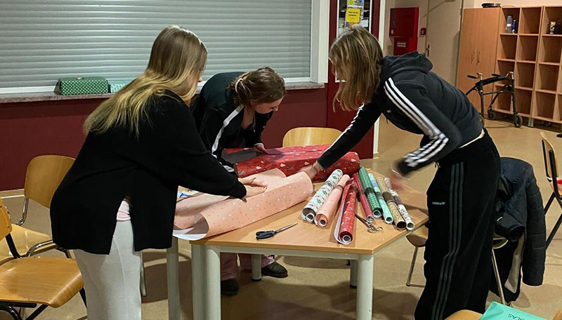 Besonders engagiert zeigte sich dabei unser Internat: Insgesamt zwölf InternatsschülerInnen beteiligten sich tatkräftig an der Vorbereitung und Verpackung der Geschenke. Ein besonderer Dank gilt dabei unserer Internatssprecherin Ang sowie Sofiia, die beide mit viel Herzblut und Organisationstalent dazu beitrugen, dass die Aktion ein voller Erfolg wurde.