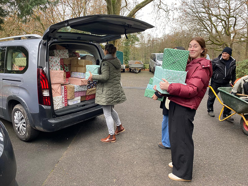 Über das schulinterne Kommunikationstool Schulmanager wurden alle Schülerinnen und Schüler zur Teilnahme aufgerufen, mit starker Resonanz: Zahlreiche Schuhkartons mit kleinen Geschenken wurden gesammelt, liebevoll in Geschenkboxen umgewandelt und anschließend weihnachtlich dekoriert.