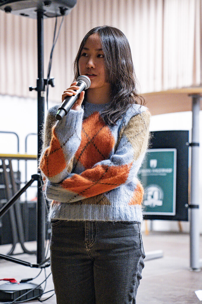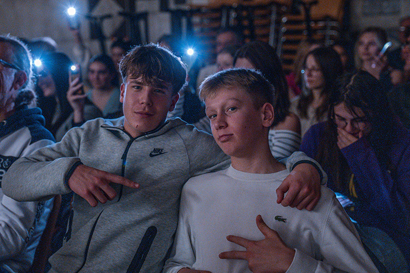 Musikalisch war der Abend ein Highlight. Die einzelnen Beiträge – von der gefühlvollen Clemens-Violine bei „Jingle Bells“ über Gesangsdarbietungen von Cara und Martha mit „Last Christmas“ und „Winter Wonderland“ von Shae (inklusive Tanzeinlage) bis hin zu Gitarre (Donald – „Memory“), Trompete (Rafael mit „Lass und froh und munter sein“) und Klavier – wurden von Joshua Neumann organisiert und gemeinsam mit den Mitwirkenden intensiv geprobt. Die Begeisterung sprang schnell auf das Publikum über: Es wurde viel geklatscht, gelacht und bei dem ein oder anderen Gesangsbeitrag, wie zum Beispiel beim Duo Sara (Klavier) und Leonie (Gesang), erleuchteten sogar die Handy-Taschenlampen den Saal.