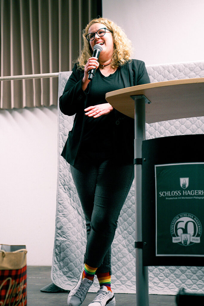 Organisiert wurde der Abend vom Sprecherrat, federführend durch Leonie und Max, die souverän und charmant durch das Programm führten. Unterstützt wurden sie dabei von den Erziehenden Elfriede Schneider und Christian Mehrens, die im Hintergrund für einen reibungslosen Ablauf sorgten. Internatsleiterin Yvonne Schmidt ließ es sich zum Auftakt nicht nehmen, auch in diesem Jahr in ihrer Ansprache ihre Schüler:innen für ein positives Miteinander zu motivieren.